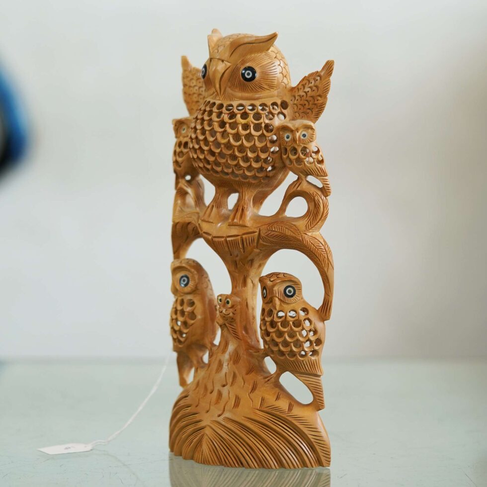 Handcrafted Wooden Owl Stand: Whimsical and Functional Decor Piece
